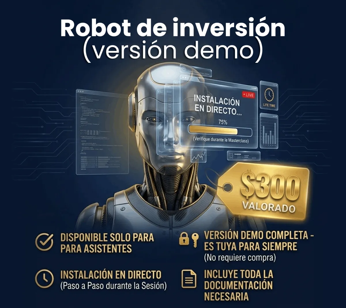 Robot de inversión (versión demo) valorado en $300. Lo ves instalar en directo durante la masterclass.